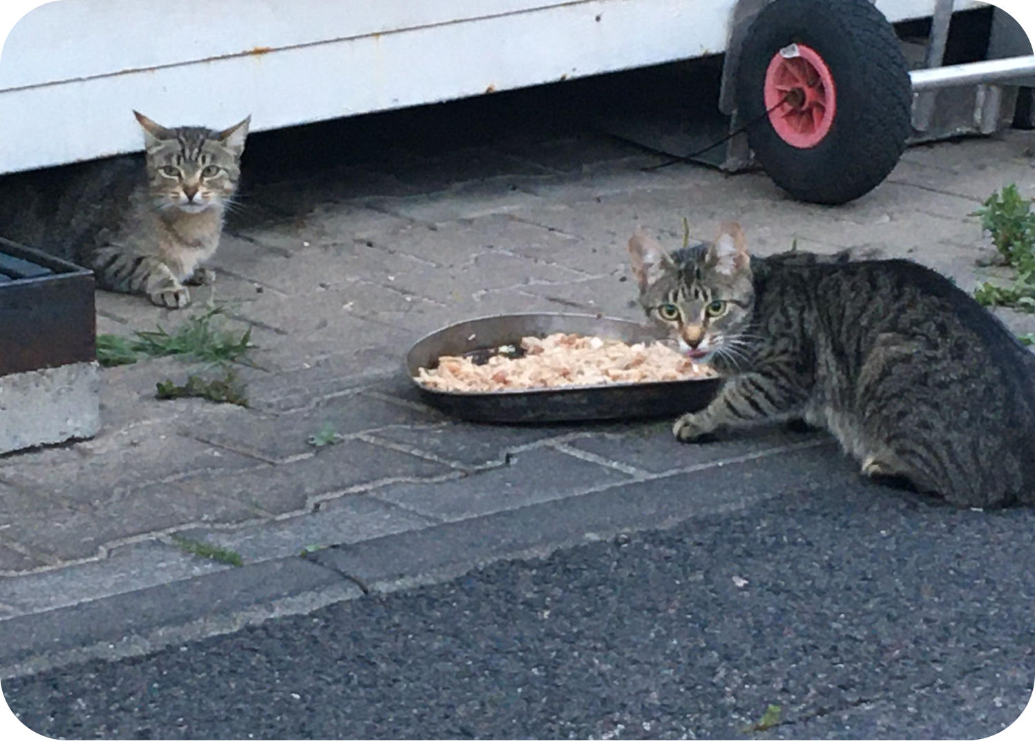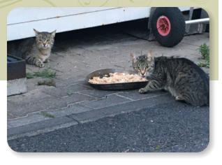 freundin täglich zuverlässig und liebevoll um einige Gruppen Straßenkatzen in