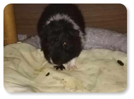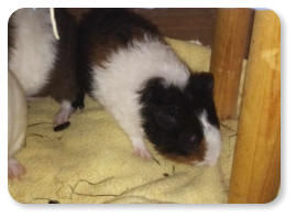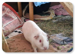 Aufnahme:05.08.2023geb.:ca.Februar 2023 (lt. ehem. Besitzer eher jünger)Rasse:Glatthaar in weiß mit p.e. und dunklen Öhrchen (California Einschlag)Aufnahmegewicht:569 g!Bei Aufnahme trächtig, zusammen mit unkastrastriertem Bock HappyAm 02.10.2023 kamen drei gesunde Meerschweinchen zur Welt.Voraussichtlich Anfang 2024 kann Nanuk mit ihren inzwischen kastrierten Partner Happy vermittelt werden.